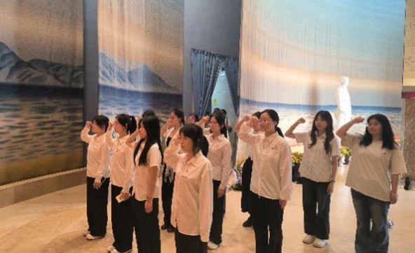 参观结束后,全体团员们在纪念馆内举行庄严的集体宣誓仪式。在领誓人的带领下,团员们高举右拳,齐声宣誓,铿锵有力的誓言在纪念馆上空回荡,彰显着团员青年们坚定的理想信念。